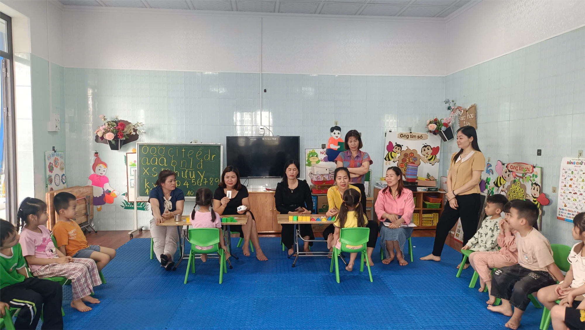Đánh giá chất lượng giáo dục trẻ mẫu giáo 5-6 tuổi là nhiệm vụ quan trọng nhằm thực hiện theo kế hoạch Chương trình GDMN nhằm chuẩn bị tâm lí, tâm thế cho trẻ chuẩn bị vào lớp 1. Ngày 28/4, Ban giám hiệu nhà trường tiến hành kiểm tra đánh giá chất lượng trẻ 5 tuổi tại các lớp.