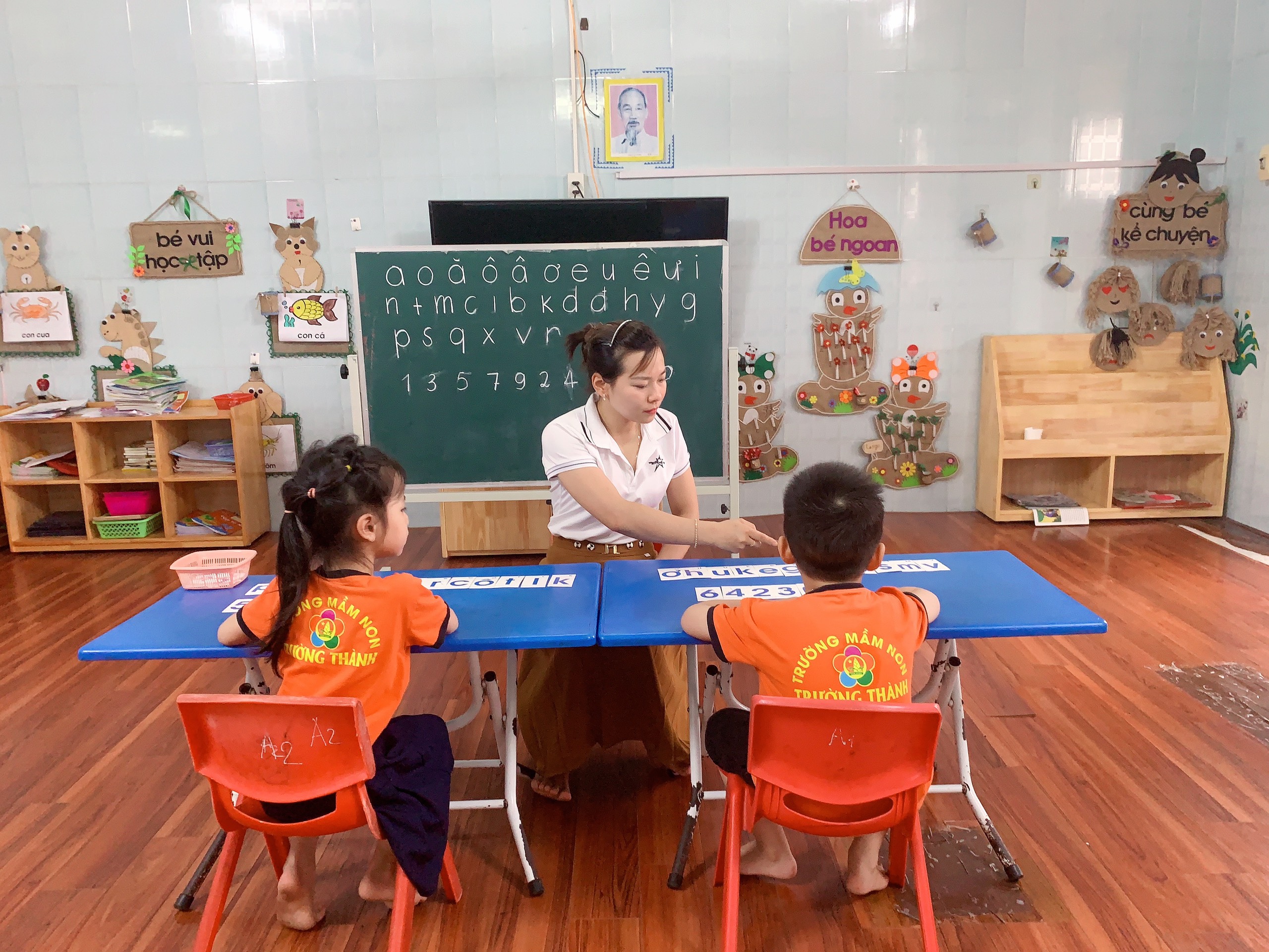 Đánh giá chất lượng giáo dục trẻ mẫu giáo 5-6 tuổi là nhiệm vụ quan trọng nhằm thực hiện theo kế hoạch Chương trình GDMN nhằm chuẩn bị tâm lí, tâm thế cho trẻ chuẩn bị vào lớp 1. Ngày 22/5, Ban giám hiệu nhà trường tiến hành kiểm tra đánh giá chất lượng trẻ 5 tuổi tại các lớp.