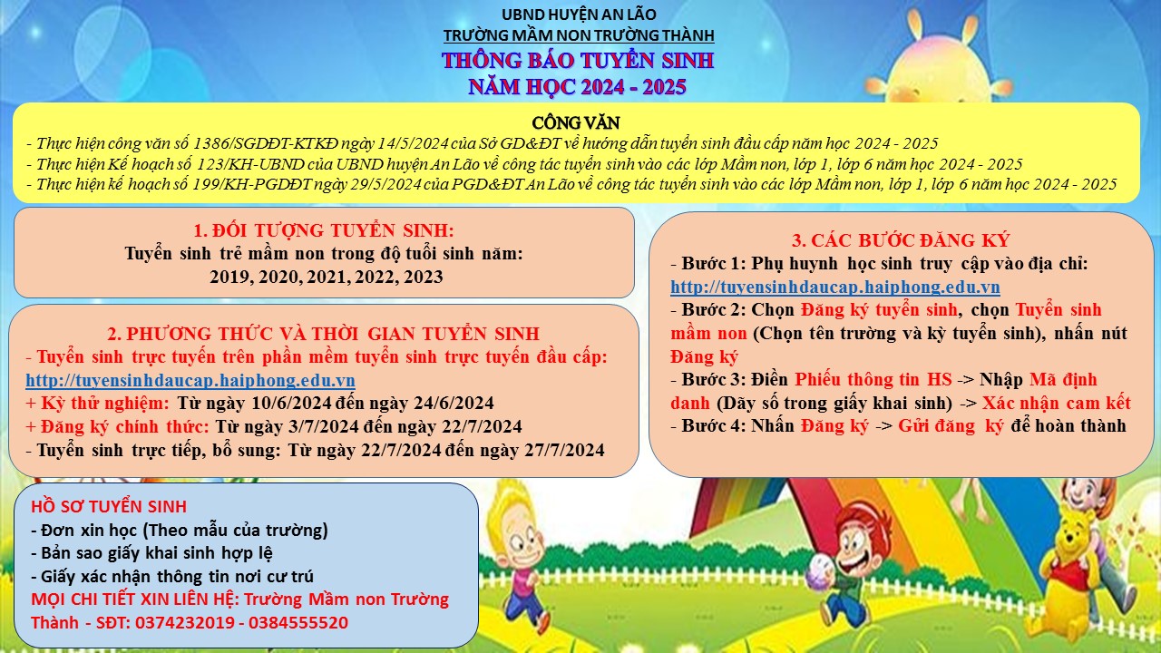 ☘️☘️ Chào mừng các bé đến với trường Mầm non Trường Thành. Khi đến trường các bé yêu được chăm sóc - giáo dục, chia sẻ, yêu thương!