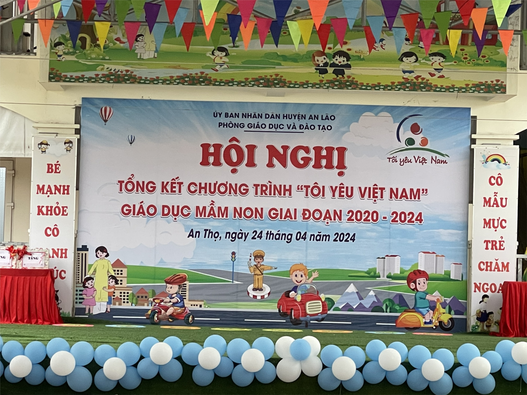 Thực hiện nhiệm vụ năm học; Thực hiện Kế hoạch số 368/KH-PGDĐT ngày 09/10/2023 của Phòng GD&ĐT về việc triển khai Chương trình Tôi yêu Việt Nam trong các cơ sở GDMN, ngày 24/4/2024, tại Trường mầm non An Thọ, Phòng GD&ĐT tổ chức Hội nghị tổng kết Chương trình Tôi yêu Việt Nam giai đoạn 2020-2024. Trường Mầm non Trường Thành đã tham dự hội nghị: