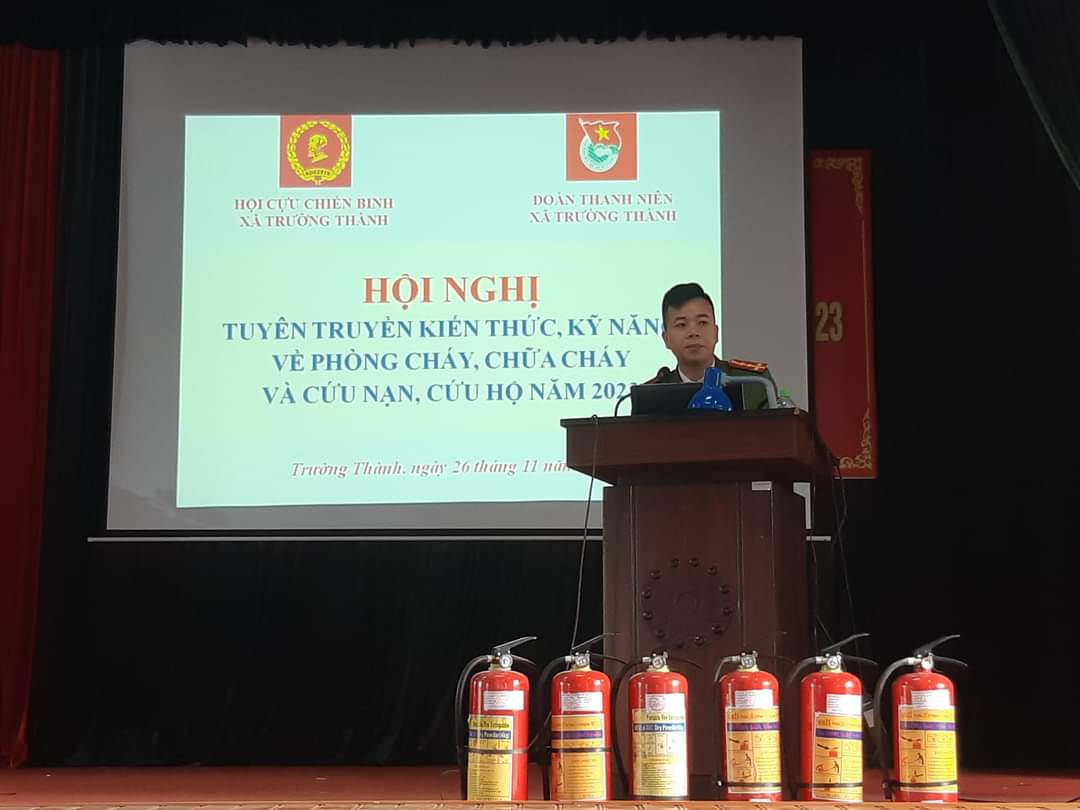 Sáng ngày 26/11/2023 Đoàn Thanh niên xã, Hội Cựu chiến binh và giáo viên Trường Mầm non Tường Thành đã phối hợp cùng đội cảnh sát phòng cháy, chữa cháy và cứu nạn, cứu hộ công an huyện An Lão tổ chức lớp tập huấn tuyên truyền kỹ năng về phòng cháy, chữa cháy và cứu nạn, cứu hộ cho các hội viên và đoàn viên xã Trường Thành.