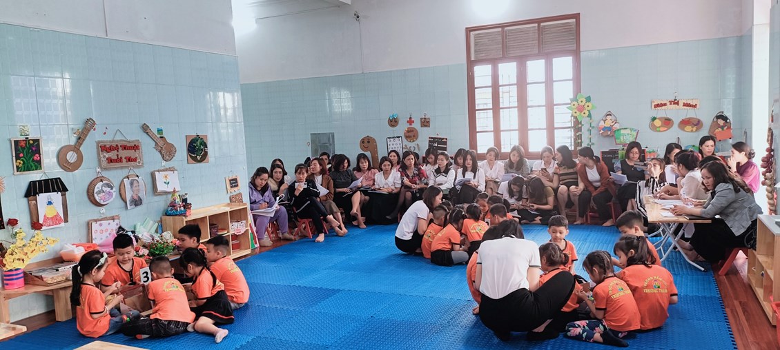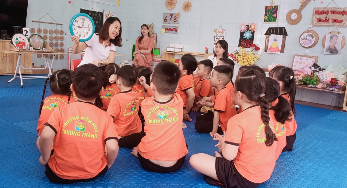 Thực hiện kế hoạch nhiệm vụ năm học, ngày 10/3/2023 cụm chuyên môn An Tiến đã tổ chức sinh hoạt chuyên môn theo hướng nghiên cứu bài học tại trường Mầm non Trường Thành đề tài: “Khám phá đồng hồ”- Lĩnh vực phát triển nhận thức. Đến dự và chỉ đạo công tác sinh hoạt chuyên môn cụm có Đ/c Nguyễn Thị Dung- chuyên viên Phòng giáo dục và đào tạo Huyện An Lão, các đồng chí trong ban cốt cán huyện, cùng toàn thể các đồng chí cán bộ quản lí, giáo viên trong cụm. Qua buổi sinh hoạt chuyên môn, các đồng chí đã chia sẻ, trao đổi, học tập kinh nghiệm về công tác giảng dạy để góp phần nâng cao chất lượng giáo dục trong các nhà trường nói riêng và giáo dục huyện An Lão nói chung.