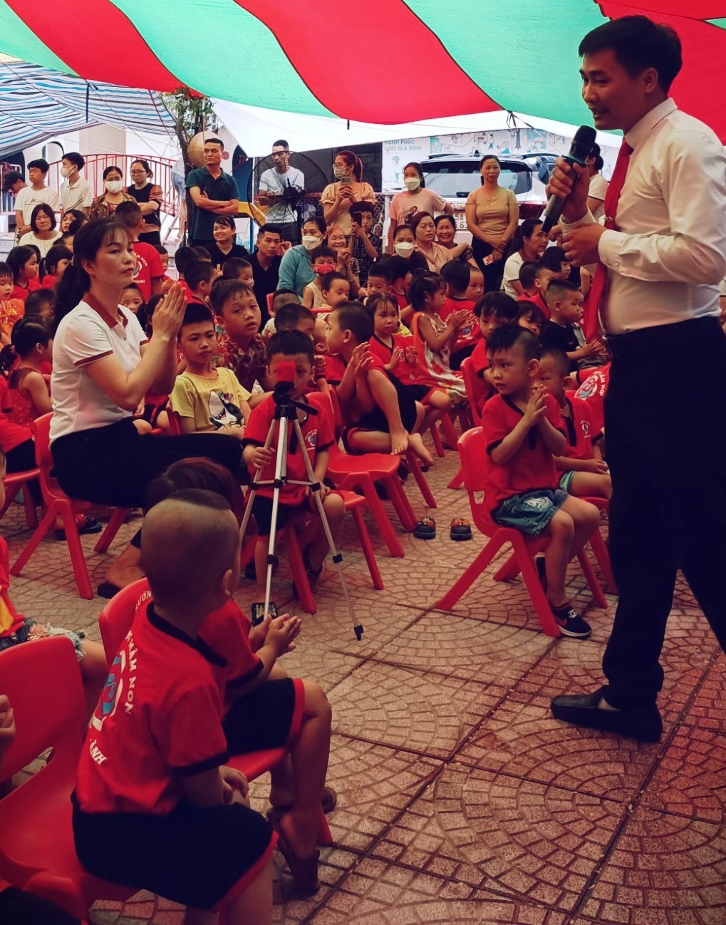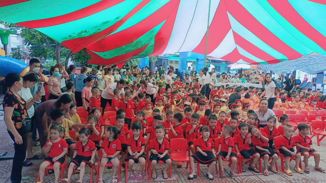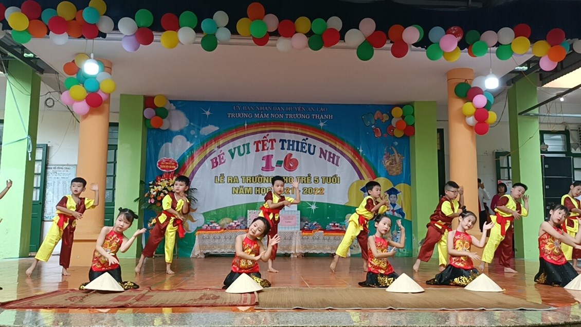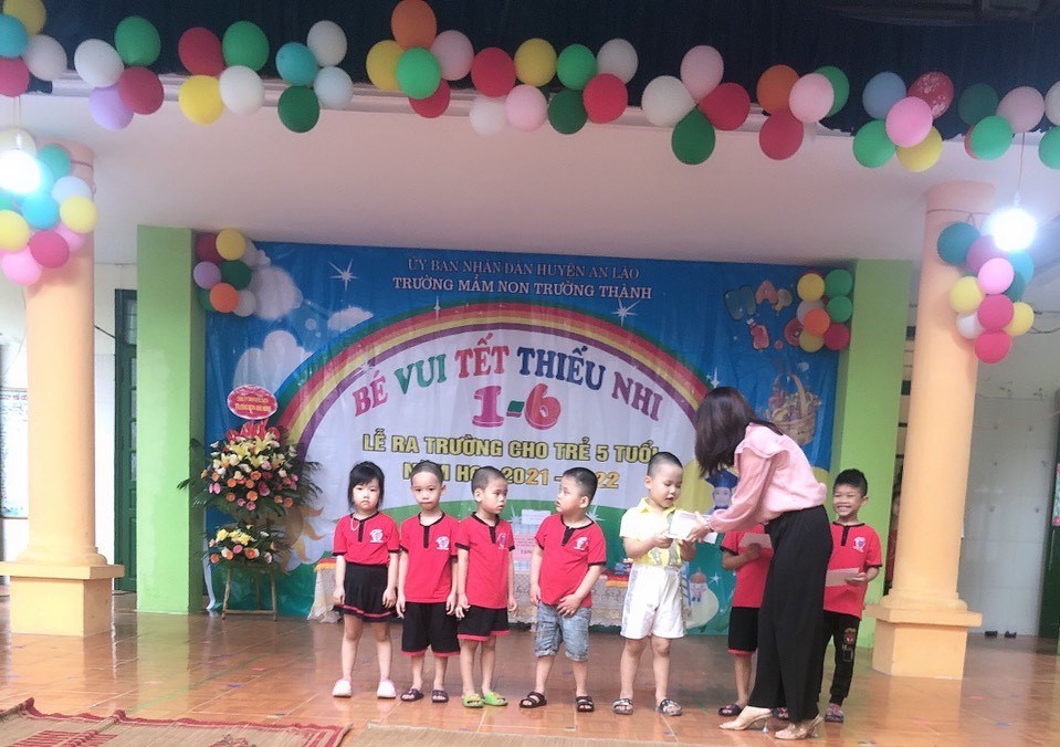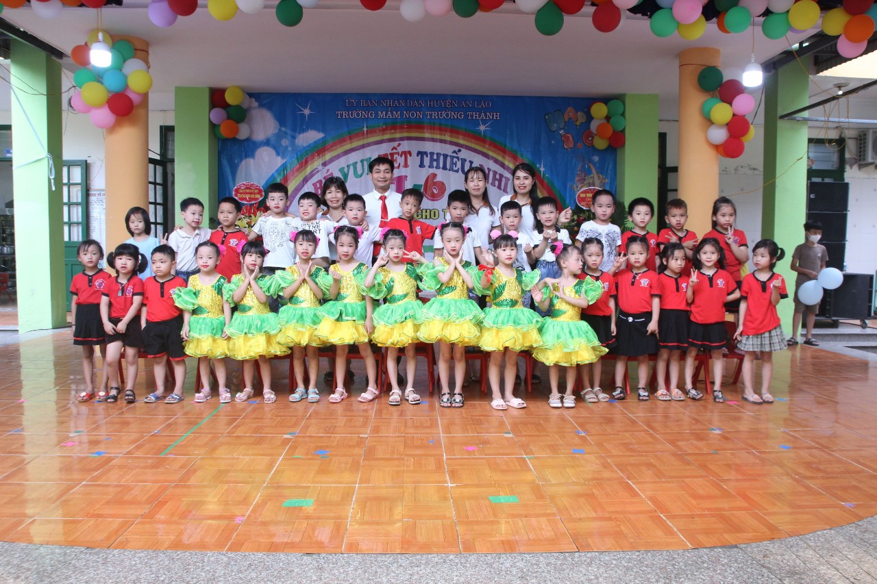 Hòa chung không khí phấn khởi tưng bừng của ngày tết nhi đồng 1/6 trên toàn thế giới, hôm nay, trường Mầm non Trường Thành long trọng tổ chức "Lễ ra trường cho trẻ 5 tuổi - Tổng kết năm học và liên hoan vui Tết nhi đồng 1-6" cho các bé. Mới 6h sáng sân trường đã rực rỡ cờ hoa, thầy cô tất bật kê bàn ghế, trang trí phông ảnh, trang điểm cho các bé để chuẩn bị cho buổi lễ. Các bé nô nức, phấn khởi trong trang phục đỏ tươi đang hân hoan chào đón ngày tết vì hòa bình.
