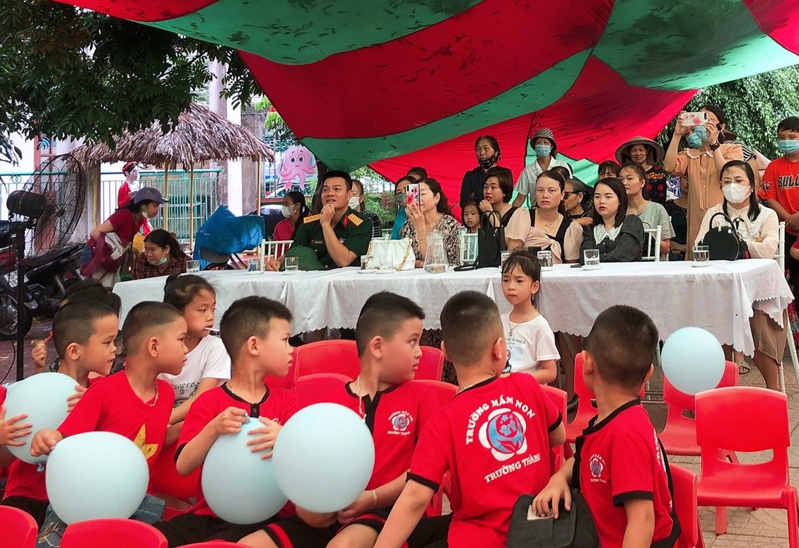 Mở đầu cho buổi lễ là những tiết mục văn nghệ thật đặc sắc và thật đáng yêu do các bé 4, 5 tuổi Trường Mầm non Trường Thành biểu diễn.