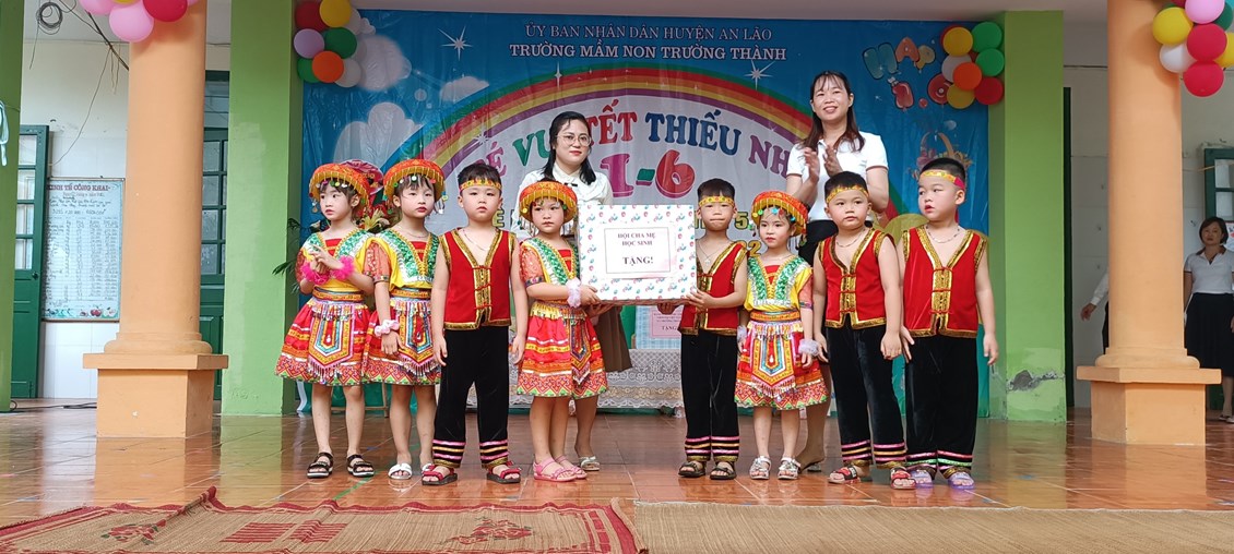 Vui hơn nữa là các bé còn được nhận những tình cảm yêu thương, những lãng hoa tươi thắm và những món quà thật ý nghĩ của các cô các bác lãnh đạo xã Trường Thành, các ban ngành đoàn thể xã, đơn vị kết nghĩa kho 29,công ty TNHH Điện lưc Huy Kiên, nhà máy nước Trường Sơn.Công ty Thực phẩm sạch Trung Liễu, cửa hàng ga Mạnh Hòa, Công ty sữa Vinamilk.